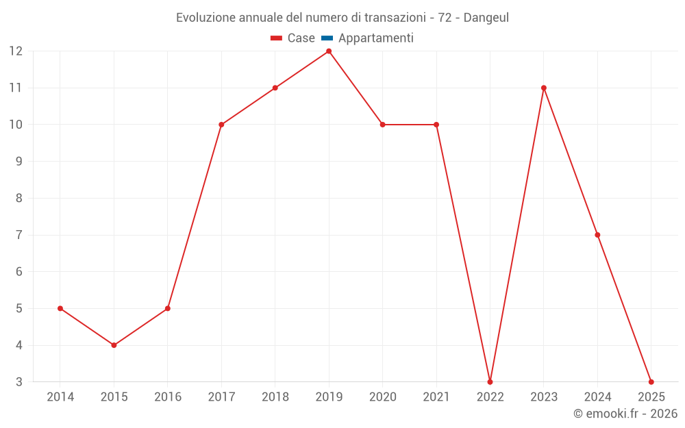 Il prezzo mediano sulle 15 transazioni di case degli ultimi 24 mesi nel comune di Dangeul era di 1 113 € al metro quadrato per un valore patrimoniale mediano di 87 000 €. In questo periodo il 60% delle transazioni era tra 788 e 1 695 € al metro quadrato (dal 2° all'8° decile).