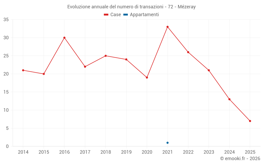 Il prezzo mediano sulle 29 transazioni di case degli ultimi 24 mesi nel comune di Mézeray era di 1 313 € al metro quadrato per un valore patrimoniale mediano di 120 000 €. In questo periodo il 60% delle transazioni era tra 759 e 1 732 € al metro quadrato (dal 2° all'8° decile).