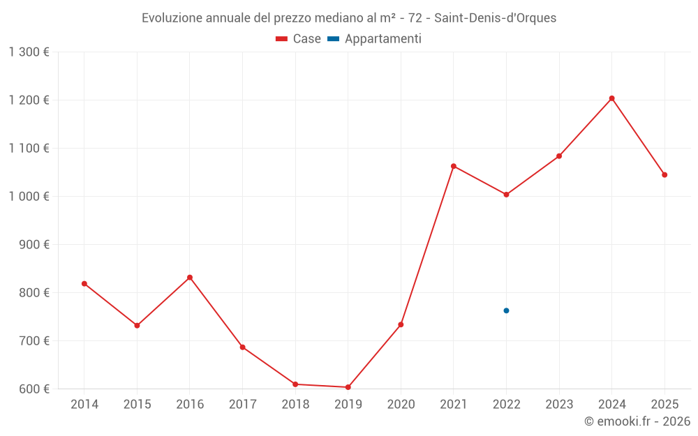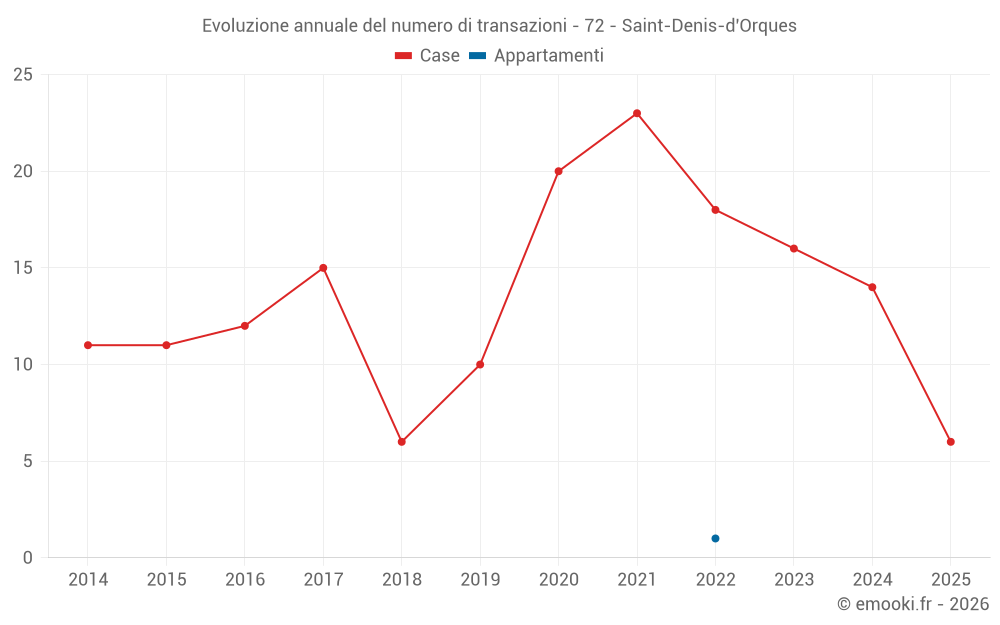 Il prezzo mediano sulle 16 transazioni di case degli ultimi 12 mesi nel comune di Saint-Denis-d'Orques era di 1 229 € al metro quadrato per un valore patrimoniale mediano di 87 500 €. In questo periodo il 60% delle transazioni era tra 804 e 1 711 € al metro quadrato (dal 2° all'8° decile).