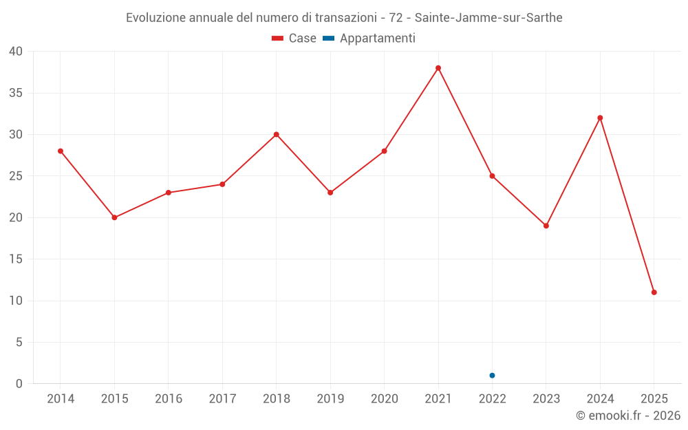 Il prezzo mediano sulle 29 transazioni di case degli ultimi 12 mesi nel comune di Sainte-Jamme-sur-Sarthe era di 1 531 € al metro quadrato per un valore patrimoniale mediano di 115 000 €. In questo periodo il 60% delle transazioni era tra 1 164 e 1 975 € al metro quadrato (dal 2° all'8° decile).
