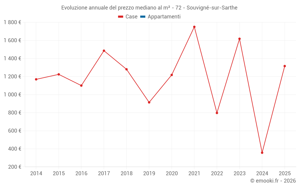 Evoluzione del prezzo mediano al m² degli appartamenti