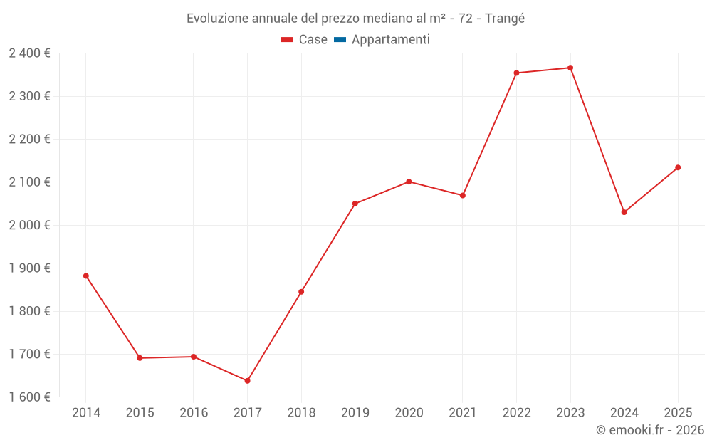 Il prezzo mediano sulle 31 transazioni di case degli ultimi 24 mesi nel comune di Trangé era di 2 062 € al metro quadrato per un valore patrimoniale mediano di 223 927 €. In questo periodo il 60% delle transazioni era tra 1 724 e 2 726 € al metro quadrato (dal 2° all'8° decile).