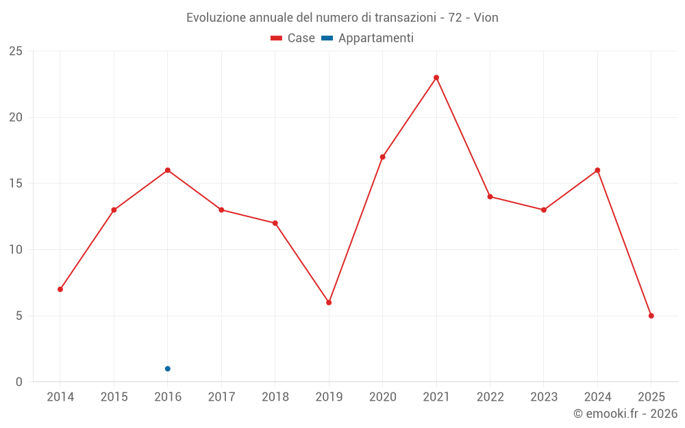 Il prezzo mediano sulle 16 transazioni di case degli ultimi 12 mesi nel comune di Vion era di 1 246 € al metro quadrato per un valore patrimoniale mediano di 164 500 €. In questo periodo il 60% delle transazioni era tra 948 e 1 909 € al metro quadrato (dal 2° all'8° decile).