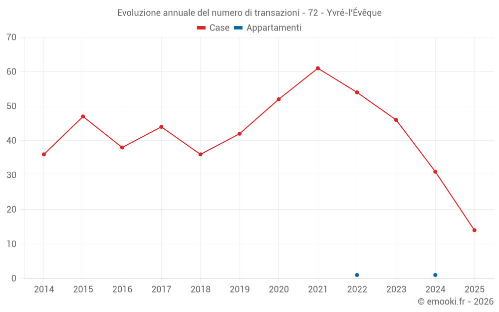 Il prezzo mediano sulle 30 transazioni di case degli ultimi 12 mesi nel comune di Yvré-l'Évêque era di 1 925 € al metro quadrato per un valore patrimoniale mediano di 216 500 €. In questo periodo il 60% delle transazioni era tra 1 434 e 2 428 € al metro quadrato (dal 2° all'8° decile).