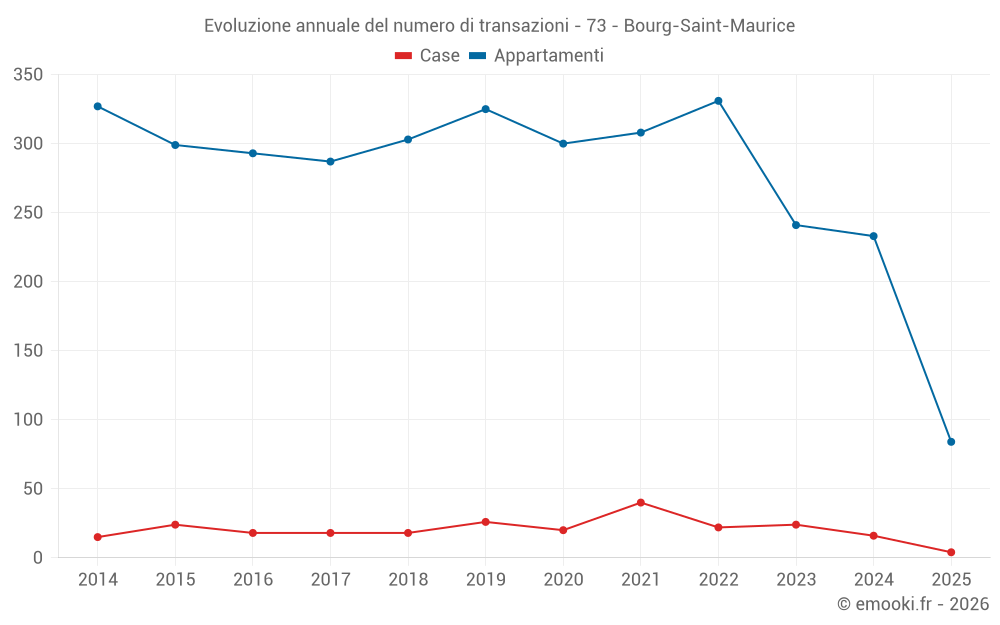 Il prezzo mediano sulle 45 transazioni di appartamenti degli ultimi 3 mesi nel comune di Bourg-Saint-Maurice era di 5 271 € al metro quadrato per un valore patrimoniale mediano di 209 300 €. In questo periodo il 60% delle transazioni era tra 3 774 e 7 635 € al metro quadrato (dal 2° all'8° decile).