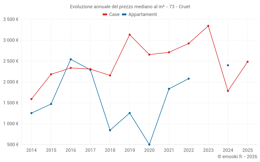 Qual è il prezzo al m2 delle case in Cruet?