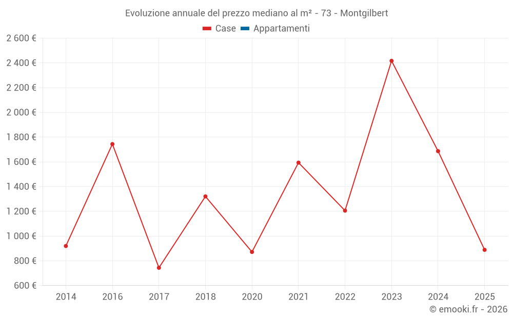 Evoluzione del prezzo mediano al m² degli appartamenti