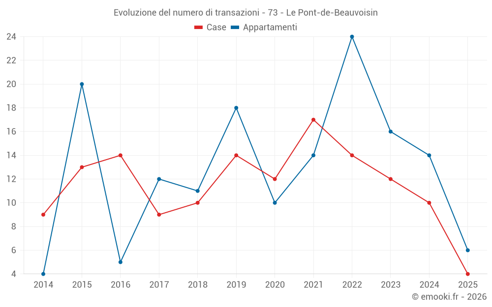 Il prezzo mediano sulle 31 transazioni di appartamenti degli ultimi 24 mesi nel comune di Le Pont-de-Beauvoisin era di 1 489 € al metro quadrato per un valore patrimoniale mediano di 113 000 €. In questo periodo il 60% delle transazioni era tra 1 351 e 2 015 € al metro quadrato (dal 2° all'8° decile).