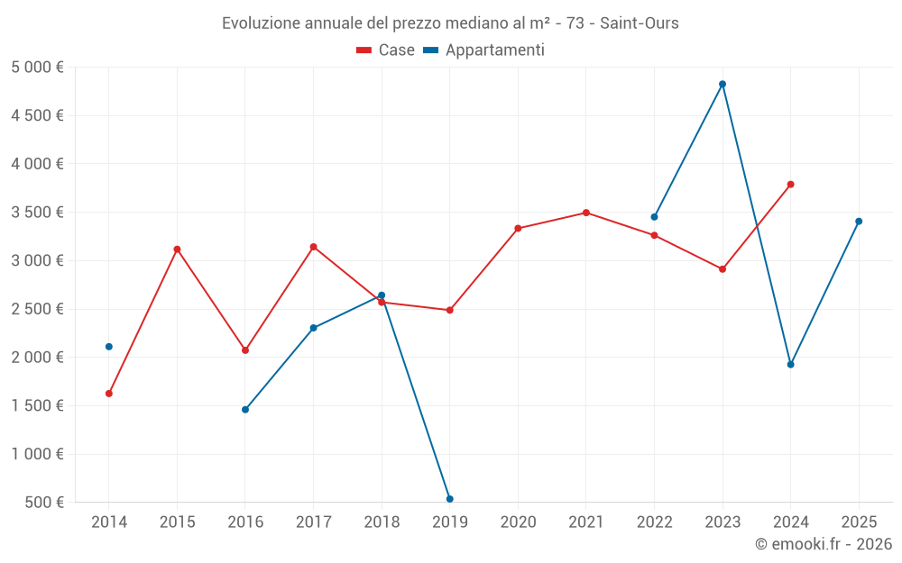 Evoluzione del prezzo mediano al m² degli appartamenti