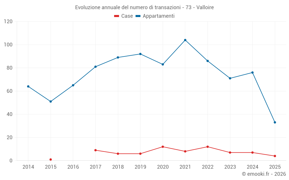 Il prezzo mediano sulle 33 transazioni di appartamenti degli ultimi 6 mesi nel comune di Valloire era di 5 250 € al metro quadrato per un valore patrimoniale mediano di 177 000 €. In questo periodo il 60% delle transazioni era tra 4 112 e 6 602 € al metro quadrato (dal 2° all'8° decile).