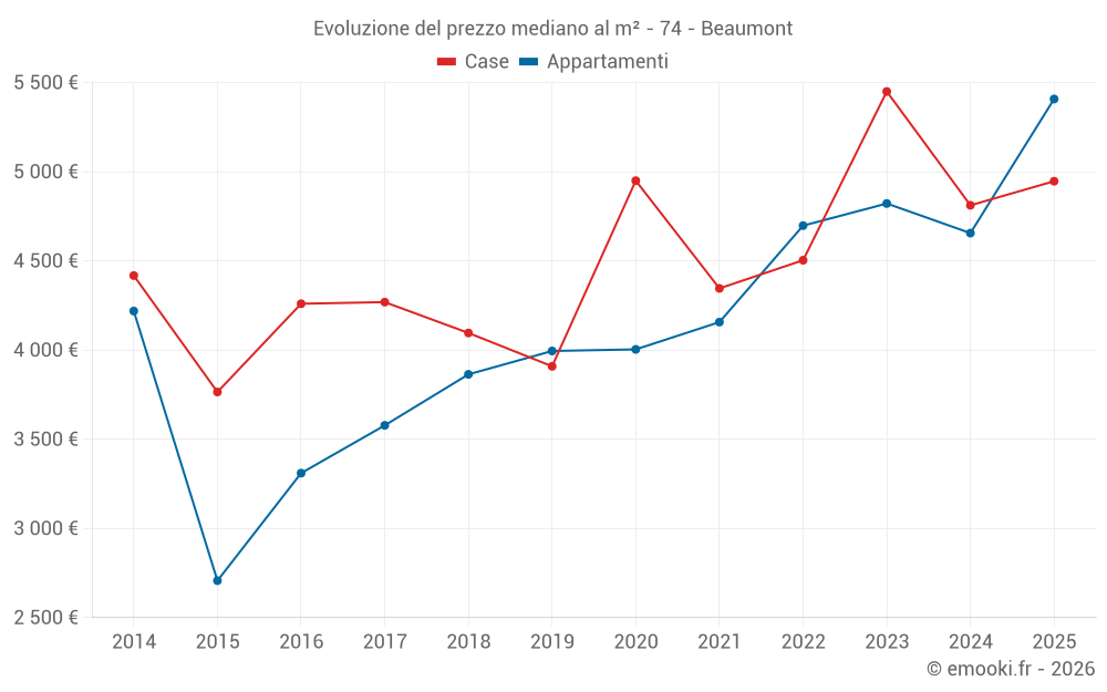 Il prezzo mediano sulle 18 transazioni di appartamenti degli ultimi 12 mesi nel comune di Beaumont era di 4 938 € al metro quadrato per un valore patrimoniale mediano di 341 750 €. In questo periodo il 60% delle transazioni era tra 4 185 e 5 581 € al metro quadrato (dal 2° all'8° decile).