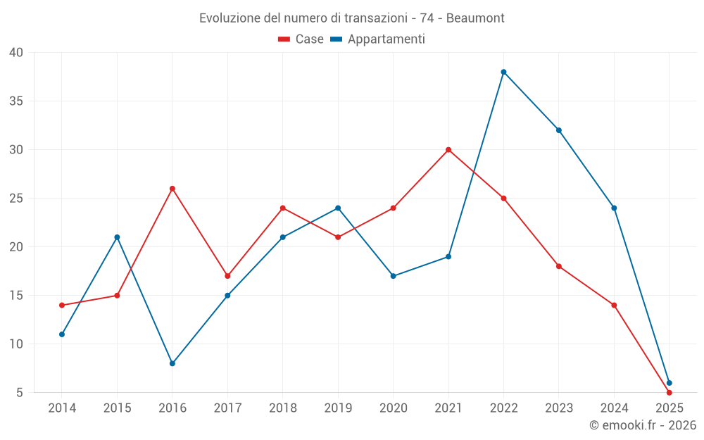 Il prezzo mediano sulle 30 transazioni di case degli ultimi 24 mesi nel comune di Beaumont era di 4 915 € al metro quadrato per un valore patrimoniale mediano di 589 500 €. In questo periodo il 60% delle transazioni era tra 3 623 e 5 690 € al metro quadrato (dal 2° all'8° decile).