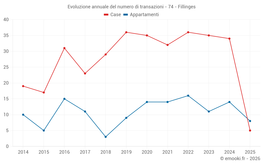 Il prezzo mediano sulle 25 transazioni di case degli ultimi 12 mesi nel comune di Fillinges era di 4 092 € al metro quadrato per un valore patrimoniale mediano di 436 000 €. In questo periodo il 60% delle transazioni era tra 3 085 e 5 344 € al metro quadrato (dal 2° all'8° decile).