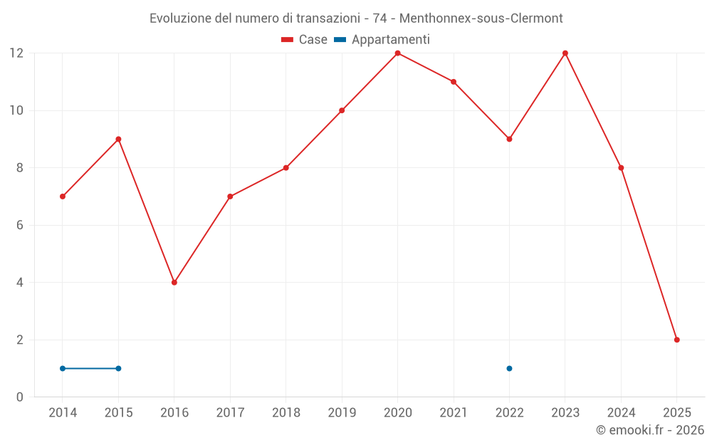 Il prezzo mediano sulle 16 transazioni di case degli ultimi 24 mesi nel comune di Menthonnex-sous-Clermont era di 3 052 € al metro quadrato per un valore patrimoniale mediano di 300 100 €. In questo periodo il 60% delle transazioni era tra 2 407 e 4 308 € al metro quadrato (dal 2° all'8° decile).