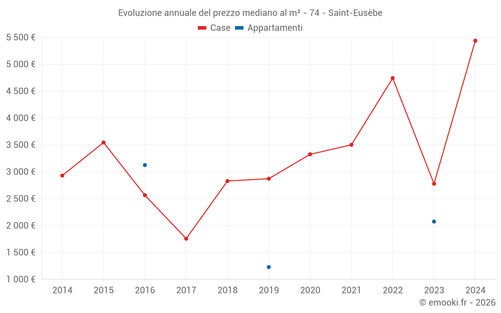 Evoluzione del prezzo mediano al m² degli appartamenti