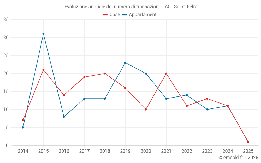 Il prezzo mediano sulle 14 transazioni di appartamenti degli ultimi 24 mesi nel comune di Saint-Félix era di 3 814 € al metro quadrato per un valore patrimoniale mediano di 212 182 €. In questo periodo il 60% delle transazioni era tra 3 025 e 4 264 € al metro quadrato (dal 2° all'8° decile).