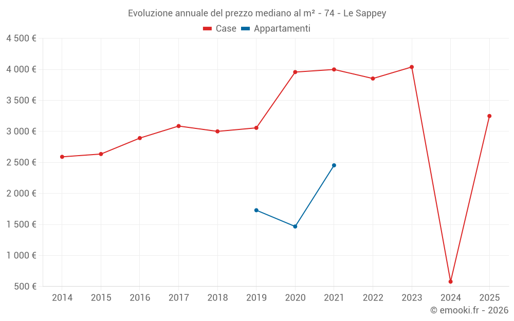 Evoluzione del prezzo mediano al m² degli appartamenti