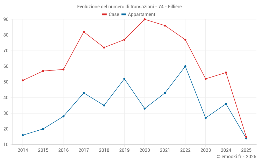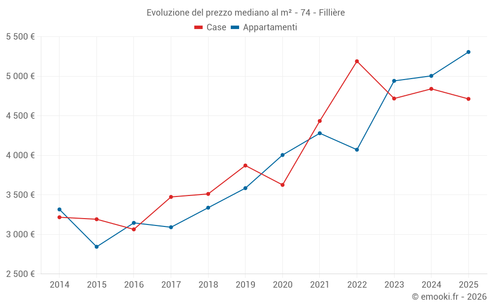 Il prezzo mediano sulle 37 transazioni di appartamenti degli ultimi 12 mesi nel comune di Fillière era di 5 103 € al metro quadrato per un valore patrimoniale mediano di 327 500 €. In questo periodo il 60% delle transazioni era tra 3 492 e 5 759 € al metro quadrato (dal 2° all'8° decile).