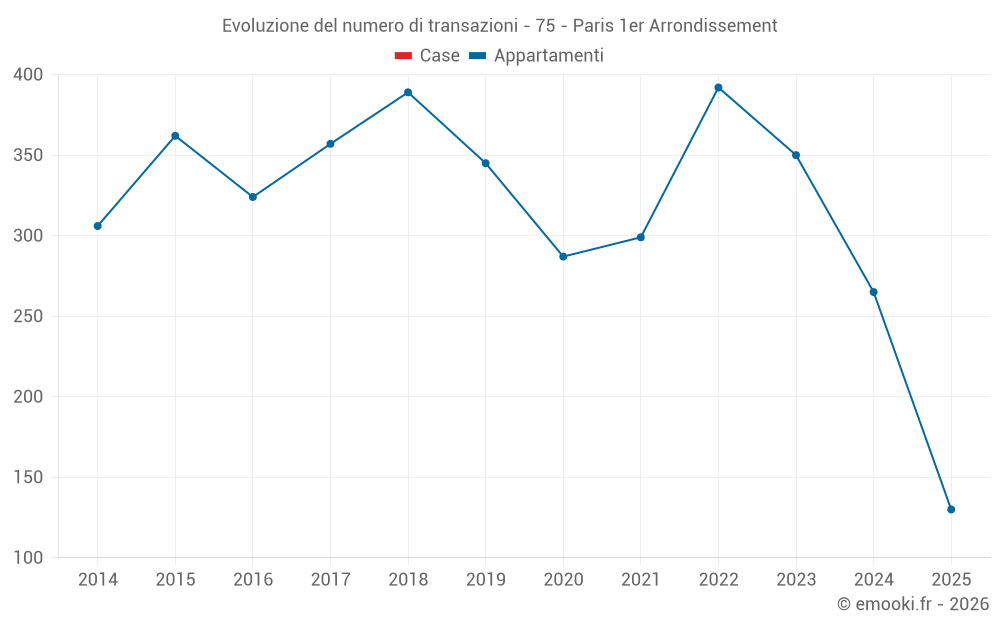 Il prezzo mediano sulle 46 transazioni di appartamenti degli ultimi 3 mesi nel comune di Paris 1er Arrondissement era di 12 332 € al metro quadrato per un valore patrimoniale mediano di 403 442 €. In questo periodo il 60% delle transazioni era tra 9 143 e 15 522 € al metro quadrato (dal 2° all'8° decile).