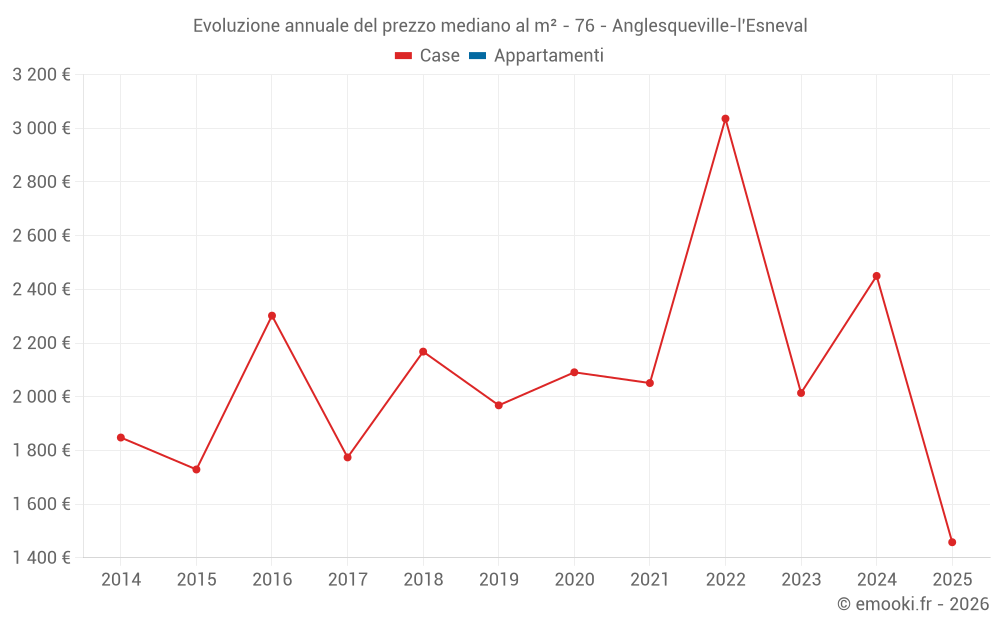 Evoluzione del prezzo mediano al m² degli appartamenti