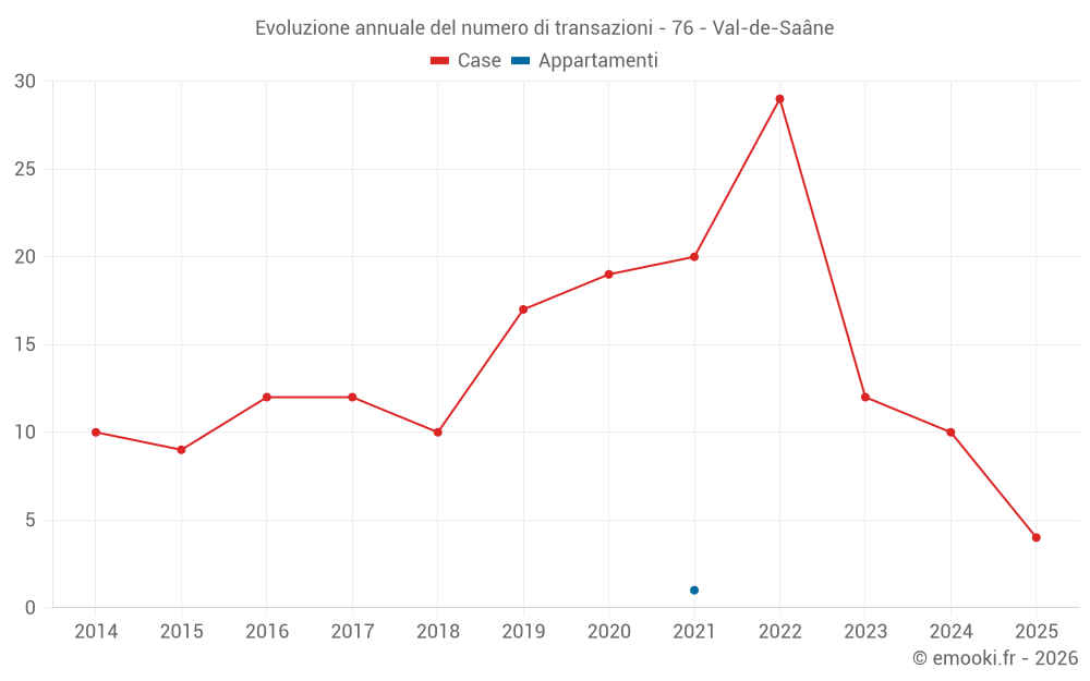 Attenzione, ultimo anno incompleto. Le proiezioni sono effettuate in base alle proporzioni tra semestri dell'anno precedente a livello dipartimentale/nazionale e per tipo di proprietà.