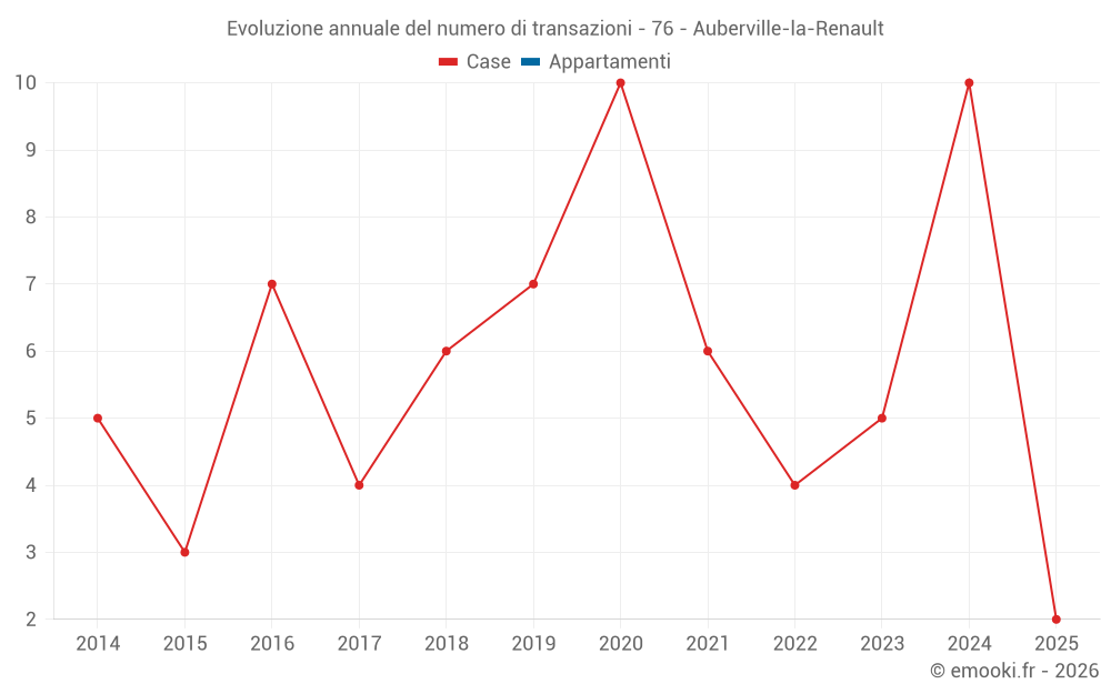 Il prezzo mediano sulle 17 transazioni di case degli ultimi 24 mesi nel comune di Auberville-la-Renault era di 2 200 € al metro quadrato per un valore patrimoniale mediano di 205 000 €. In questo periodo il 60% delle transazioni era tra 1 794 e 2 427 € al metro quadrato (dal 2° all'8° decile).