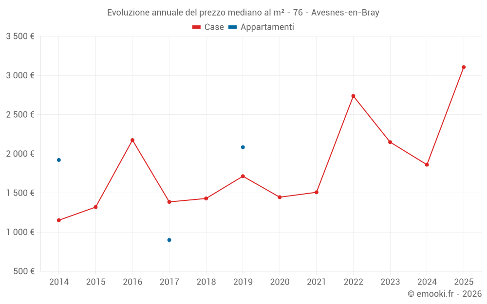 Evoluzione del prezzo mediano al m² degli appartamenti