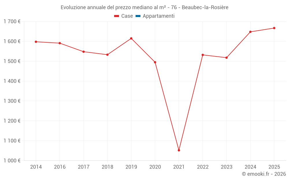 Evoluzione del prezzo mediano al m² delle case