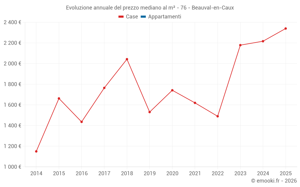 Evoluzione del prezzo mediano al m² degli appartamenti