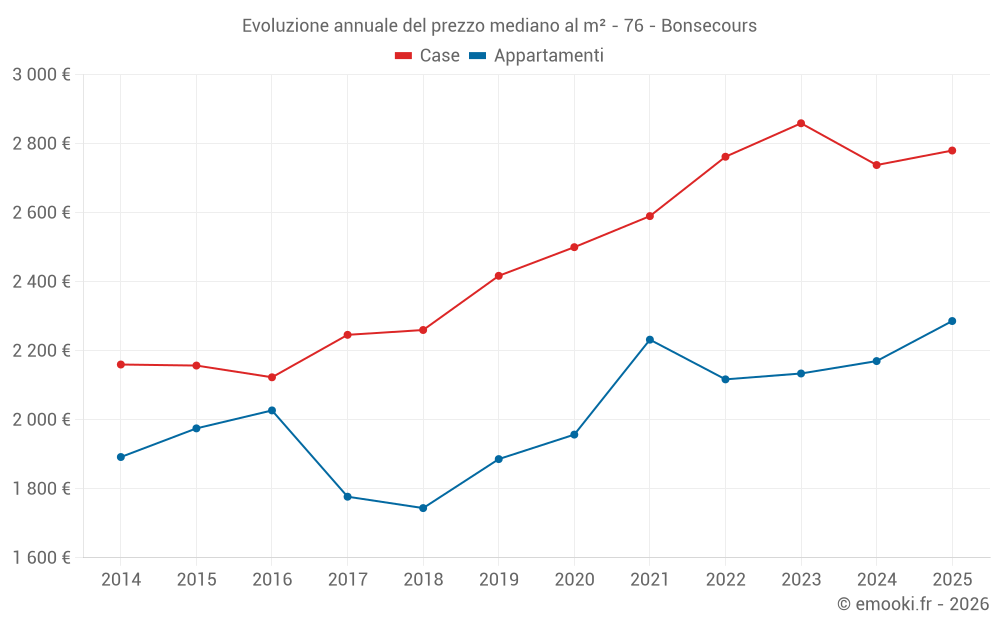 Qual è il prezzo al m2 delle case in Bonsecours?