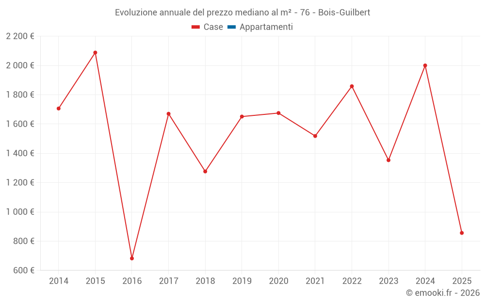 Evoluzione del prezzo mediano al m² degli appartamenti