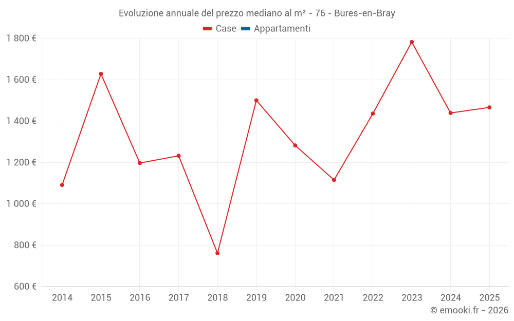 Evoluzione del prezzo mediano al m² degli appartamenti