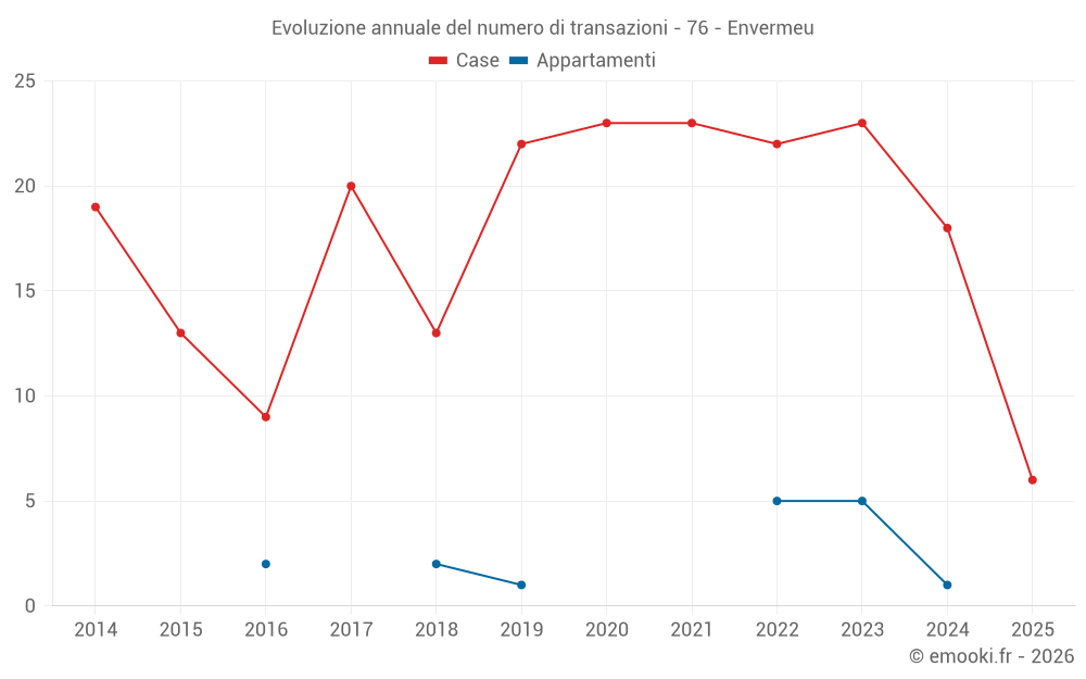 Il prezzo mediano sulle 32 transazioni di case degli ultimi 24 mesi nel comune di Envermeu era di 1 726 € al metro quadrato per un valore patrimoniale mediano di 152 500 €. In questo periodo il 60% delle transazioni era tra 1 210 e 2 163 € al metro quadrato (dal 2° all'8° decile).