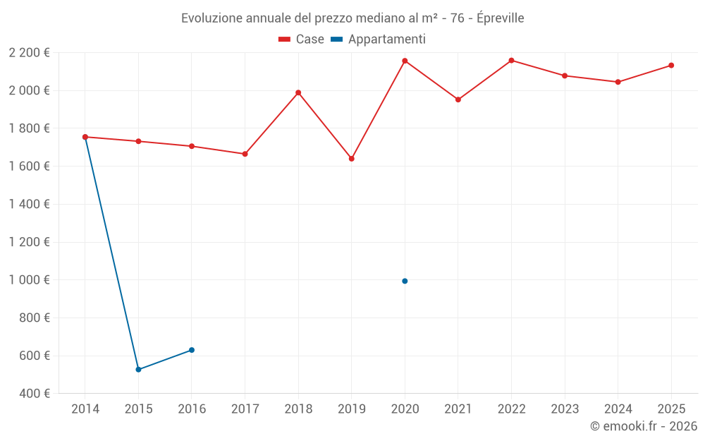 Evoluzione del prezzo mediano al m² degli appartamenti
