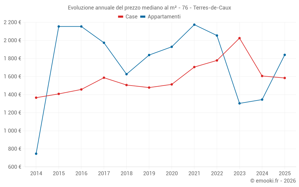 Qual è il prezzo al m2 delle case in Terres-de-Caux?