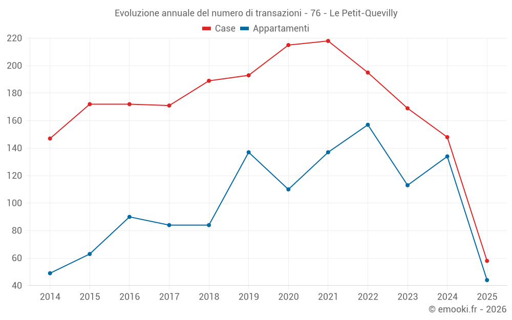 Il prezzo mediano sulle 23 transazioni di case degli ultimi 3 mesi nel comune di Le Petit-Quevilly era di 1 554 € al metro quadrato per un valore patrimoniale mediano di 99 800 €. In questo periodo il 60% delle transazioni era tra 1 086 e 1 813 € al metro quadrato (dal 2° all'8° decile).