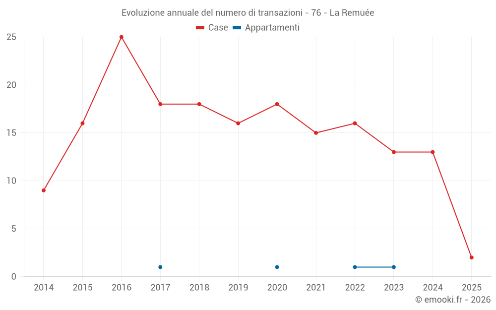 Il prezzo mediano sulle 20 transazioni di case degli ultimi 24 mesi nel comune di La Remuée era di 2 182 € al metro quadrato per un valore patrimoniale mediano di 223 750 €. In questo periodo il 60% delle transazioni era tra 1 911 e 2 585 € al metro quadrato (dal 2° all'8° decile).