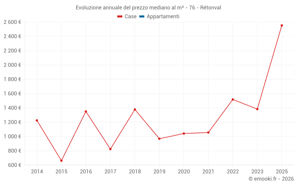 Evoluzione del prezzo mediano al m² degli appartamenti