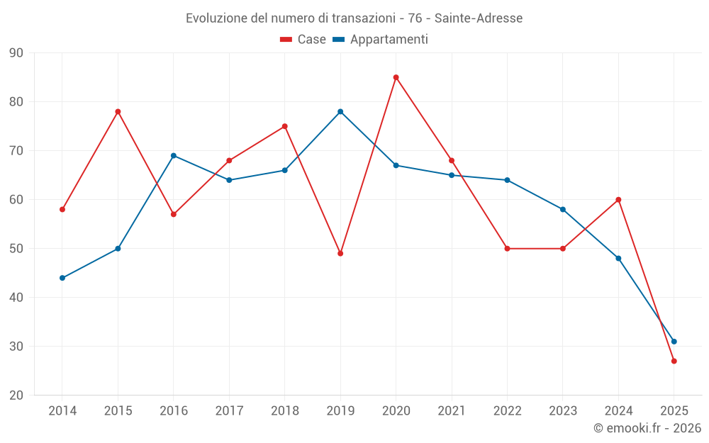 Attenzione, ultimo anno incompleto. Le proiezioni sono effettuate in base alle proporzioni tra semestri dell'anno precedente a livello dipartimentale/nazionale e per tipo di proprietà.