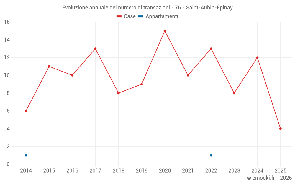 Il prezzo mediano sulle 20 transazioni di case degli ultimi 24 mesi nel comune di Saint-Aubin-Épinay era di 2 394 € al metro quadrato per un valore patrimoniale mediano di 242 195 €. In questo periodo il 60% delle transazioni era tra 1 915 e 2 890 € al metro quadrato (dal 2° all'8° decile).
