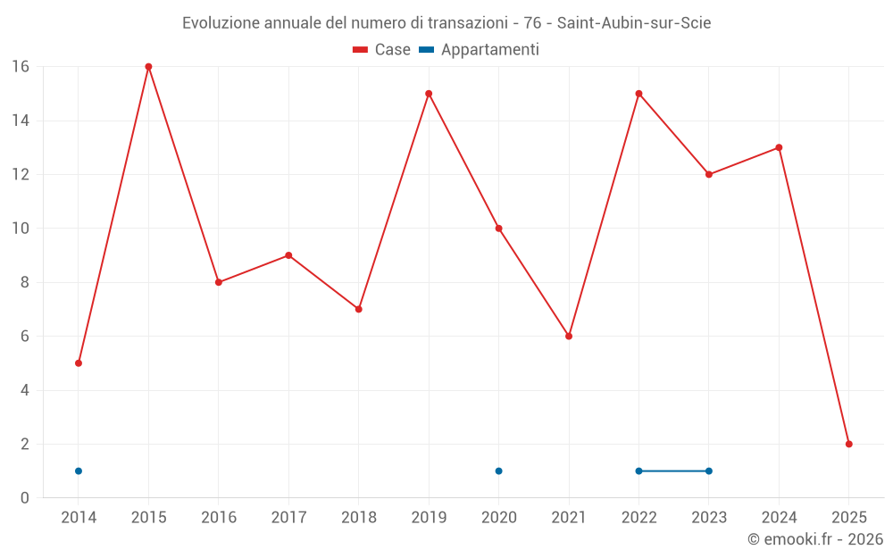 Il prezzo mediano sulle 21 transazioni di case degli ultimi 24 mesi nel comune di Saint-Aubin-sur-Scie era di 2 109 € al metro quadrato per un valore patrimoniale mediano di 270 000 €. In questo periodo il 60% delle transazioni era tra 1 200 e 2 912 € al metro quadrato (dal 2° all'8° decile).