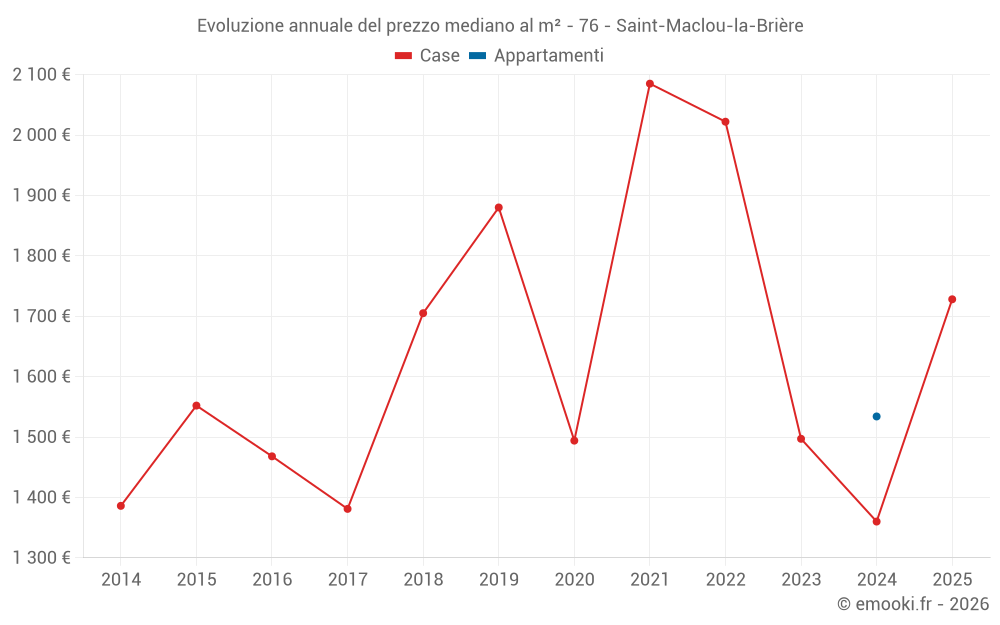 Il prezzo al m² delle case è diminuito del 17% da 4 anni, ma è aumentato del 18% in 9 anni.