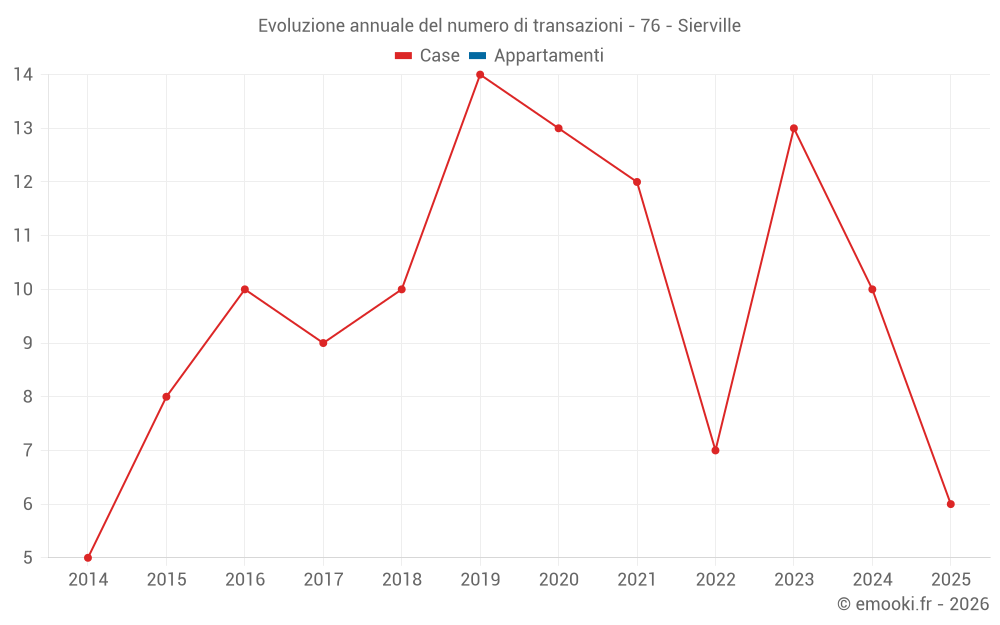 Il prezzo mediano sulle 21 transazioni di case degli ultimi 24 mesi nel comune di Sierville era di 1 905 € al metro quadrato per un valore patrimoniale mediano di 223 270 €. In questo periodo il 60% delle transazioni era tra 1 481 e 2 525 € al metro quadrato (dal 2° all'8° decile).