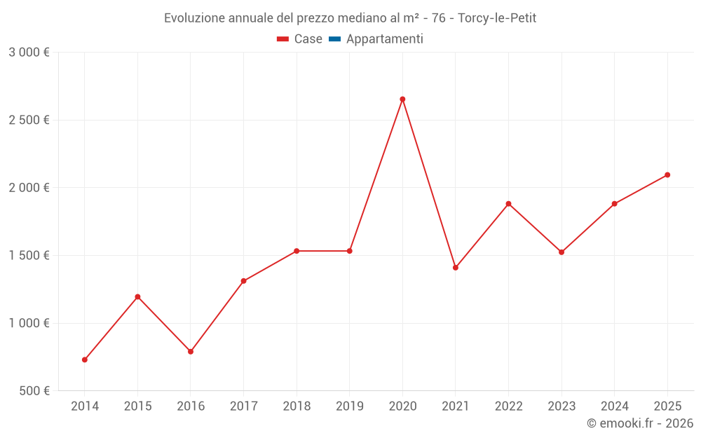 Evoluzione del prezzo mediano al m² degli appartamenti