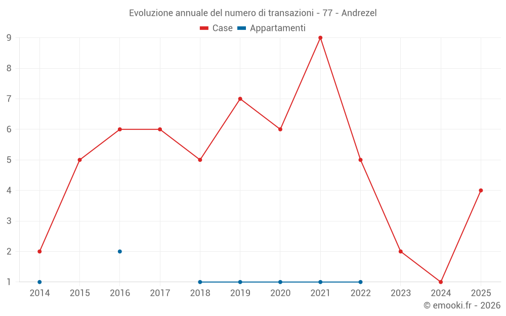 Mappa dei prezzi della casa nel comune di Andrezel, scegli una sezione per vedere le transazioni per parcella.
