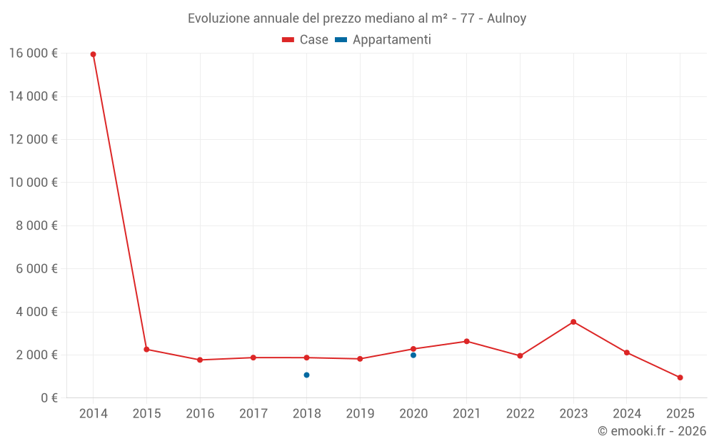 Evoluzione del prezzo mediano al m² degli appartamenti