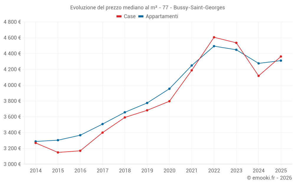 Mappa dei prezzi della casa nel comune di Bussy-Saint-Georges, scegli una sezione per vedere le transazioni per parcella.