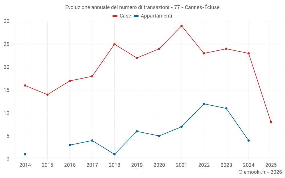 Il prezzo mediano sulle 18 transazioni di case degli ultimi 12 mesi nel comune di Cannes-Écluse era di 2 148 € al metro quadrato per un valore patrimoniale mediano di 182 500 €. In questo periodo il 60% delle transazioni era tra 1 806 e 2 289 € al metro quadrato (dal 2° all'8° decile).