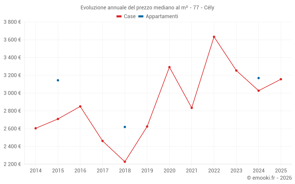 Il prezzo mediano sulle 21 transazioni di case degli ultimi 24 mesi nel comune di Cély era di 3 156 € al metro quadrato per un valore patrimoniale mediano di 300 000 €. In questo periodo il 60% delle transazioni era tra 2 211 e 3 560 € al metro quadrato (dal 2° all'8° decile).