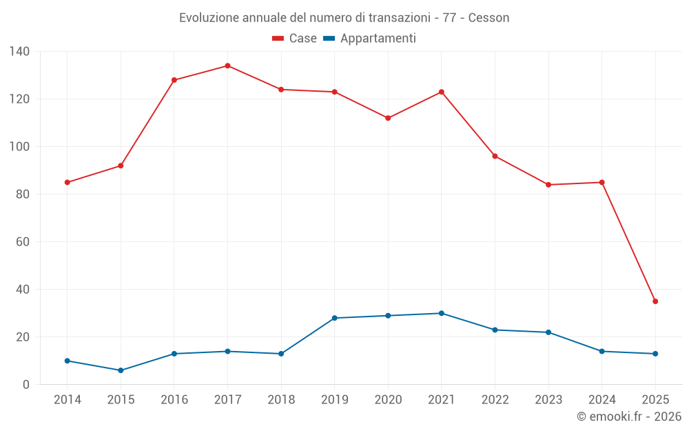 Il prezzo mediano sulle 35 transazioni di case degli ultimi 6 mesi nel comune di Cesson era di 2 655 € al metro quadrato per un valore patrimoniale mediano di 270 000 €. In questo periodo il 60% delle transazioni era tra 2 257 e 3 384 € al metro quadrato (dal 2° all'8° decile).